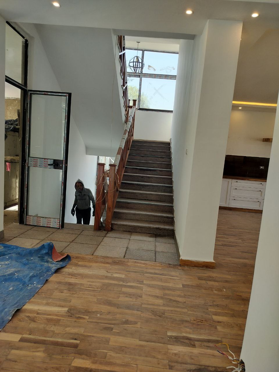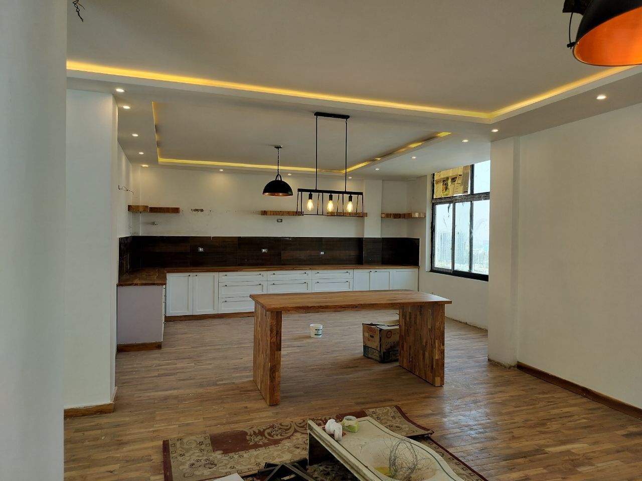 👉 Main Floor: - Living Room with Open Kitchen